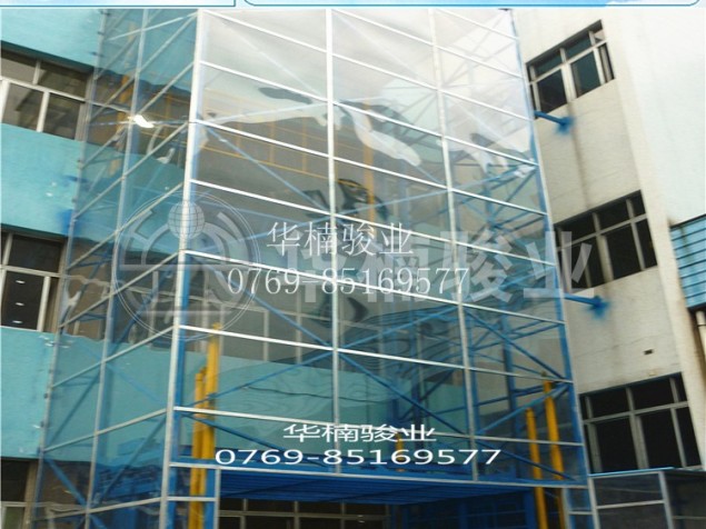 升降機(jī)采用液壓動(dòng)力,無軟直頂式油缸頂升,全PC板外圍,彩瓦雨棚,安全設(shè)施齊全,能