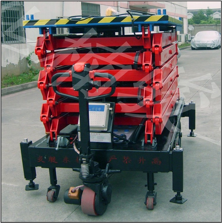 移動(dòng)剪叉升降機(jī) 廠家直銷(xiāo)(帶電瓶,人工牽引自行走)