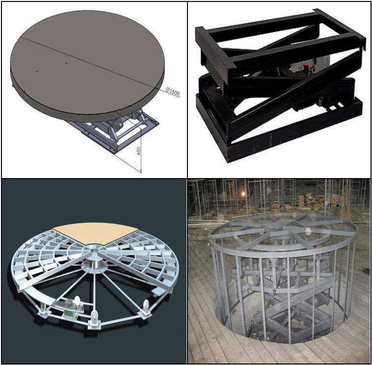 1);剪叉式升降作業(yè)平臺(tái);升降、伸縮、旋轉(zhuǎn)及多功能舞臺(tái);木板、鋼帶、石材翻板機(jī)(專利號(hào):