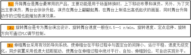 展覽中心、江門金凱悅大酒店等大型展廳、娛樂廳設(shè)計(jì)制作了大型多功能伸縮升降舞臺(tái)、旋轉(zhuǎn)升降