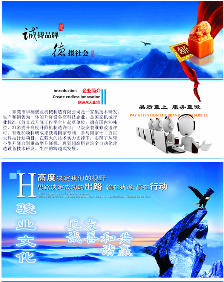 知名企業(yè)輸送了高品質(zhì)的液壓升降作業(yè)平臺(tái)。為恒大地產(chǎn)、廣州白云國 際會(huì)展中心、廣東現(xiàn)代國際